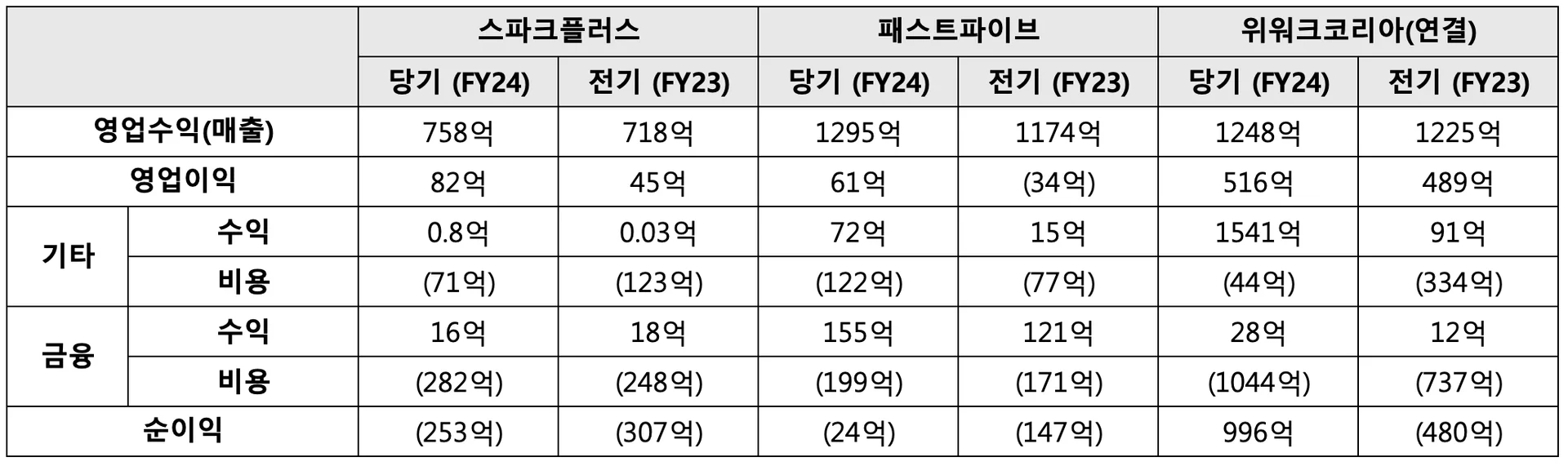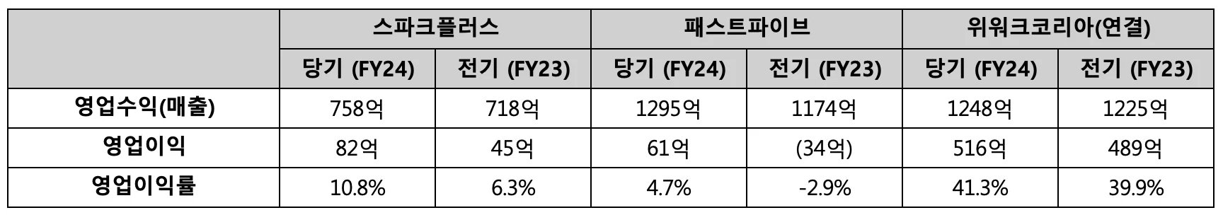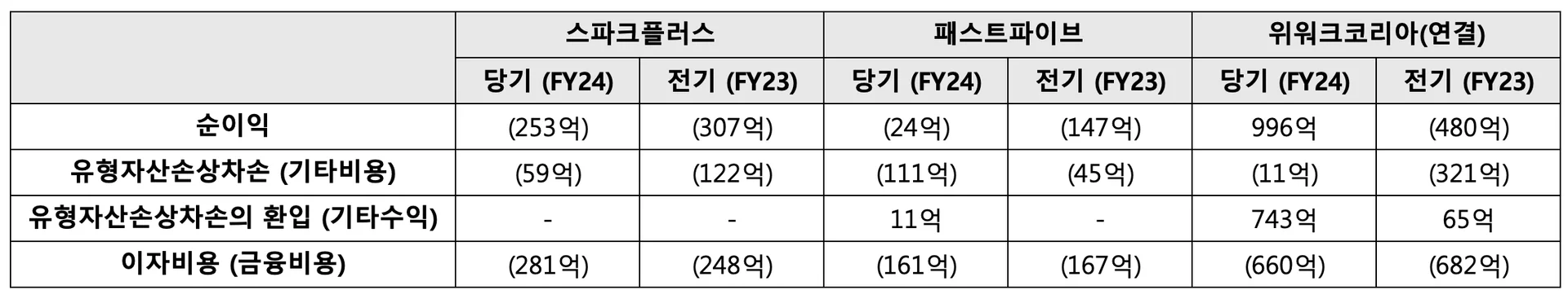 그런데요, 재미있는 사실이 있습니다. 한국의 공유오피스 3대장으로 꼽히는 위워크코리아, 패스트파이브, 스파크플러스의 2024년 재무제표를 보면,