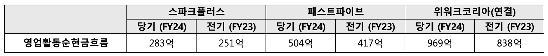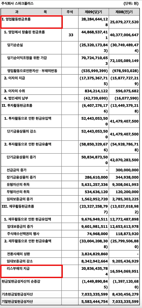 스파크플러스의 현금흐름표